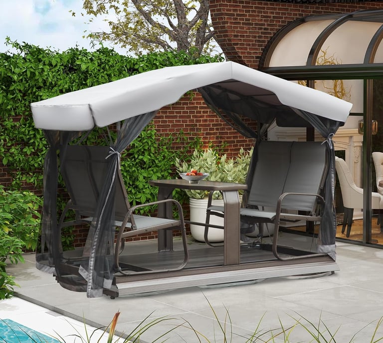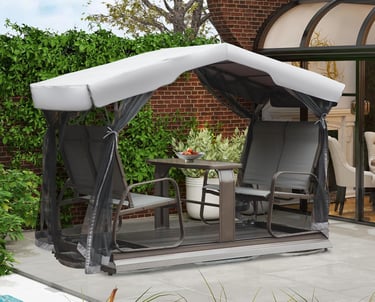 The smooth, silent gliding motion makes it perfect for relaxing afternoons, whether you're reading, chatting, or just enjoying the fresh air. The built-in canopy provides shade, while the breathable mesh keeps bugs out without blocking airflow.