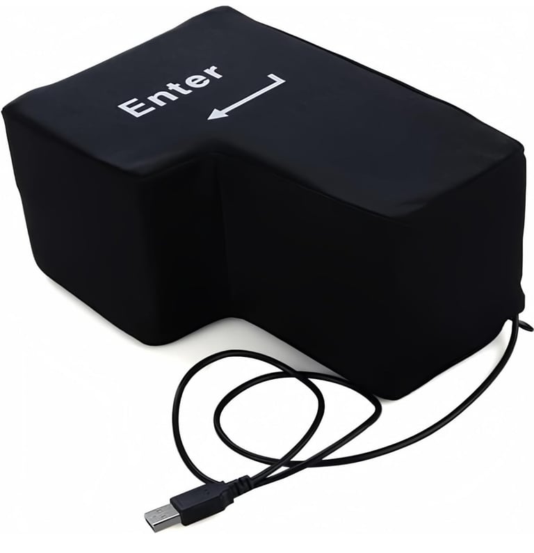 This hilarious and practical Big Enter key doubles as a USB-connected "Enter" button and a soft pillow for stress relief. Whether you're smashing stress away or sneaking a nap at your desk, it adds comfort and fun to your workspace. Perfect for offices, travel, or anyone needing a break from daily pressure.
