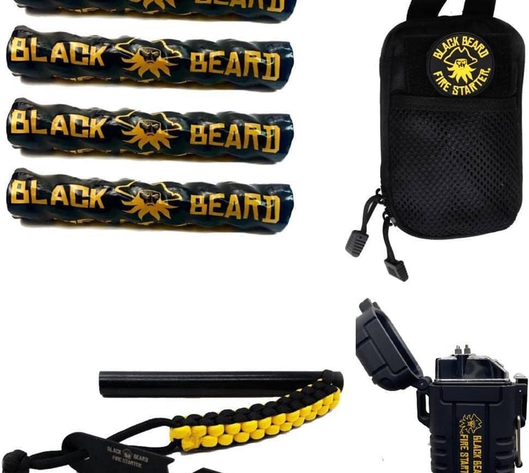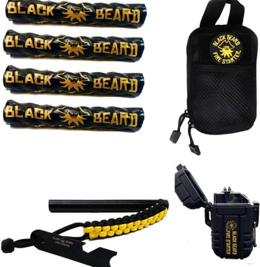 The Black Beard Pirate’s Plunder Fire Starter Kit is a complete outdoor survival solution designed for campers, hikers, and adventure enthusiasts who need a reliable way to start fires in any environment. This all-in-one kit includes four Black Beard fire starter ropes, a powerful ferro rod, a rechargeable plasma arc lighter, and a compact organizer case to keep everything ready for emergencies.