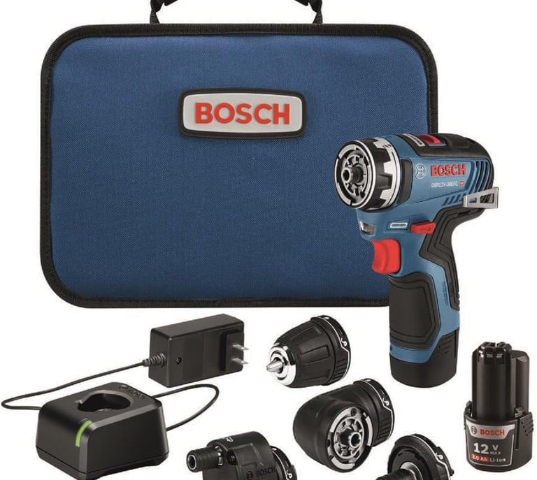 The Bosch GSR12V-300FCB22 Flexiclick Drill Driver is a compact, brushless 12V powerhouse built for precision, versatility, and tight workspaces. Featuring the 5-in-1 Flexiclick system, it includes a keyless chuck, locking bit holder, right-angle, offset-angle, and magnetic bit holder for maximum adaptability. Delivering 300 in-lbs of torque and up to 1,750 RPM, it handles drilling and driving tasks with ease while remaining lightweight at just 1.2 lbs (tool only). The two-speed transmission, 20+1 clutch settings, and LED light ensure control and visibility. With two 2.0Ah batteries included, this is an ideal professional-grade solution for installers, DIYers, and workshop use.