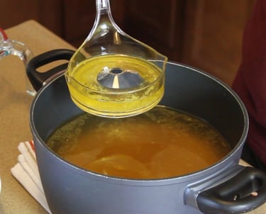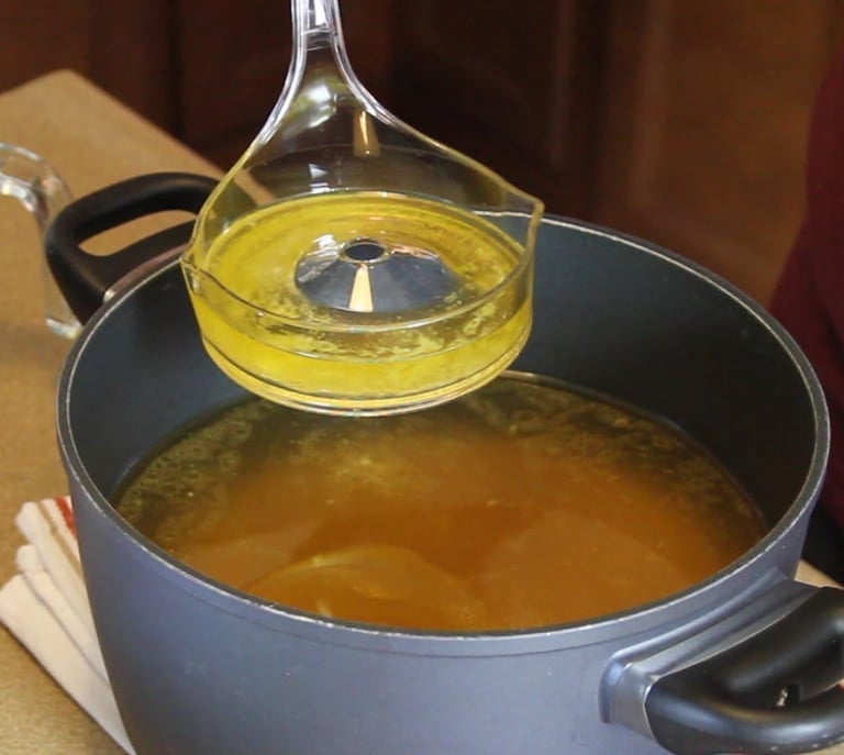 Make soups, stews, broths, and chili cleaner and healthier with the Fatsoff Soup Scoop Fat Skimmer. Designed to quickly concentrate and trap floating fat, this innovative scoop allows you to remove grease in seconds without waiting for your broth to chill. Simply press the scoop beneath the surface and let the trapped fat spill into the cup for easy disposal. Made from sturdy, heat-resistant plastic, it works safely with hot liquids and fits both large stockpots and smaller cookware. The lightweight yet durable construction ensures comfortable handling, while the dishwasher-safe design makes cleanup effortless. Proudly made in the USA by the original inventor, this practical kitchen tool saves time, reduces mess, and delivers leaner, clearer results every time you cook.