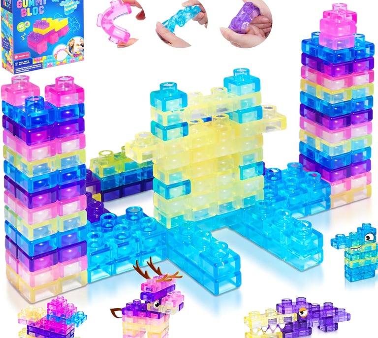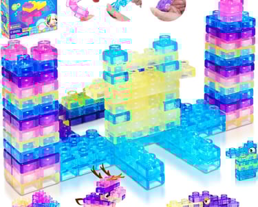 The JOY SPOT 40 PCS Sensory Soft Building Blocks set is designed to deliver safe, hands-on learning for toddlers through creative play. Made from thick, non-toxic TPE rubber, these squeezable and stretchable blocks are perfectly sized for little hands to grip, stack, and explore comfortably. The soft elastic texture provides a rich sensory experience while helping develop fine motor skills, hand-eye coordination, and early problem-solving abilities. Featuring 40 chunky pieces in bright, engaging colors, the blocks connect securely yet separate easily to reduce frustration during play. Durable, easy to clean, and lightweight for travel, this Montessori-inspired construction set is ideal for home, preschool, daycare, or on-the-go entertainment.