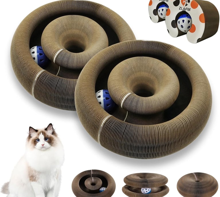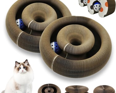 Keep your indoor cats entertained with the 2-pack Magic Organ Cat Scratcher Toys. Designed with foldable and reversible accordion panels, these cardboard scratchers engage cats’ natural hunting and scratching instincts. Each toy includes a bell ball for interactive play, while the magnetic docking system allows endless shapes, tunnels, and configurations. Made from high-density, non-toxic corrugated cardboard, they are durable, safe, and gentle on paws. Perfect for kittens, adult cats, or seniors, these scratchers encourage exercise, prevent boredom, and save your furniture from unwanted scratches. Compact, versatile, and fun—ideal for any feline playtime.