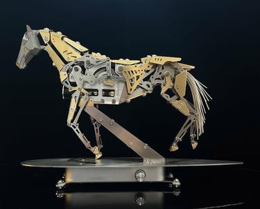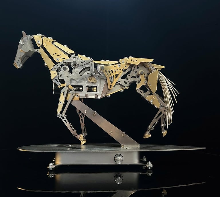 Built from precision-cut metal components, this mechanical horse recreates realistic motion using a full transmission system that mimics natural muscle movement. Every detail feels premium, from the solid metal construction to the smooth, low-noise motor that brings it to life.