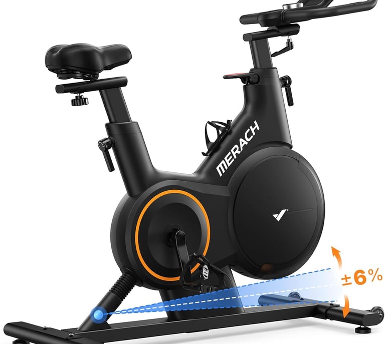 The MERACH S28 Smart Indoor Exercise Bike is a powerful home fitness machine designed to deliver a realistic and engaging cycling experience. Built with a durable alloy steel frame and a heavy 40 lb flywheel, it provides smooth and ultra-quiet rides thanks to its advanced magnetic resistance system. The bike features 16 precision resistance levels and an innovative ±6% automatic incline and decline system that simulates real road conditions, helping you burn more calories and train different muscle groups. It connects seamlessly to the MERACH app and supports popular fitness platforms like Kinomap and Zwift, giving you access to interactive workouts, global routes, and training programs. With a fully adjustable seat and handlebars, it comfortably fits users from 4'8" to 6'4" and supports up to 350 lbs. Designed for convenience, it arrives mostly pre-assembled and can be ready to ride in about 20 minutes, making it a complete smart cycling solution for home gyms.