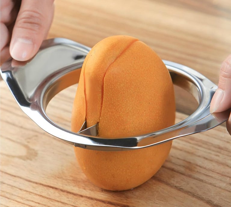 Cutting mangoes doesn’t have to be messy or frustrating anymore. This stainless steel mango cutter removes the pit in one smooth motion, giving you perfectly sliced halves in seconds.