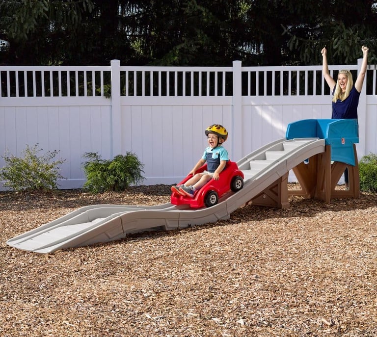 The Step2 Extreme Thrill Coaster Kids Ride-On Playset brings the excitement of an amusement park right to your backyard or playroom. Featuring a 14-foot track and an ATV-style coaster car, it encourages active play as kids climb the steps, push the car up, and ride down with thrilling motion. Built from durable double-walled plastic, it’s designed for years of safe indoor and outdoor use without fading or cracking. This interactive playset helps develop balance, coordination, and gross motor skills while keeping kids happily away from screens. A fun, sturdy ride-on adventure for toddlers ages 3 and up.