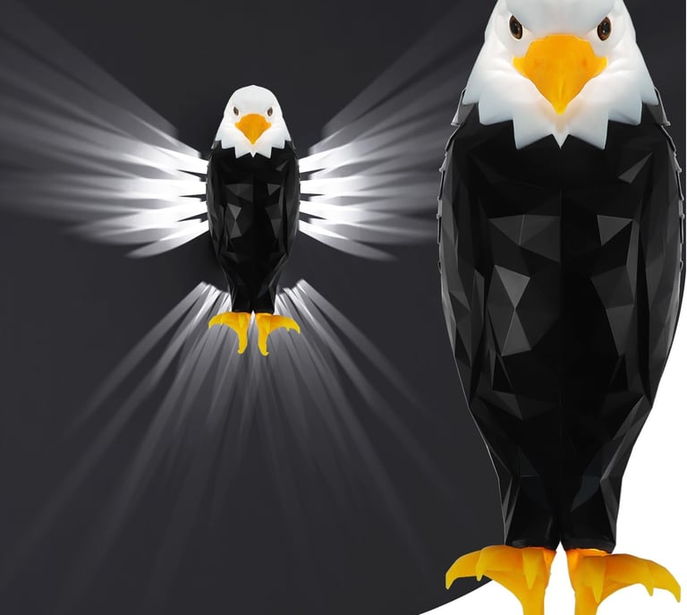 Transform your space with this stunning bald eagle wall light that combines decoration and functionality in one unique piece. The lifelike eagle design creates a powerful visual effect, projecting wings and light that instantly upgrade any room.